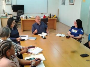En las oficinas del Rectorado de la Universidad Nacional Experimental de las Artes, Unearte, se llevó a cabo un encuentro entre el rector Ignacio Barreto Esnal, la presidenta de la Federación Venezolana de Estudiantes Universitarios (FVEU), Ariana Llanos, representantes de la federación y de la Consultoría Jurídica de la universidad, con el objetivo de abordar temas relacionados con la organización y la participación estudiantil en esta Universidad.