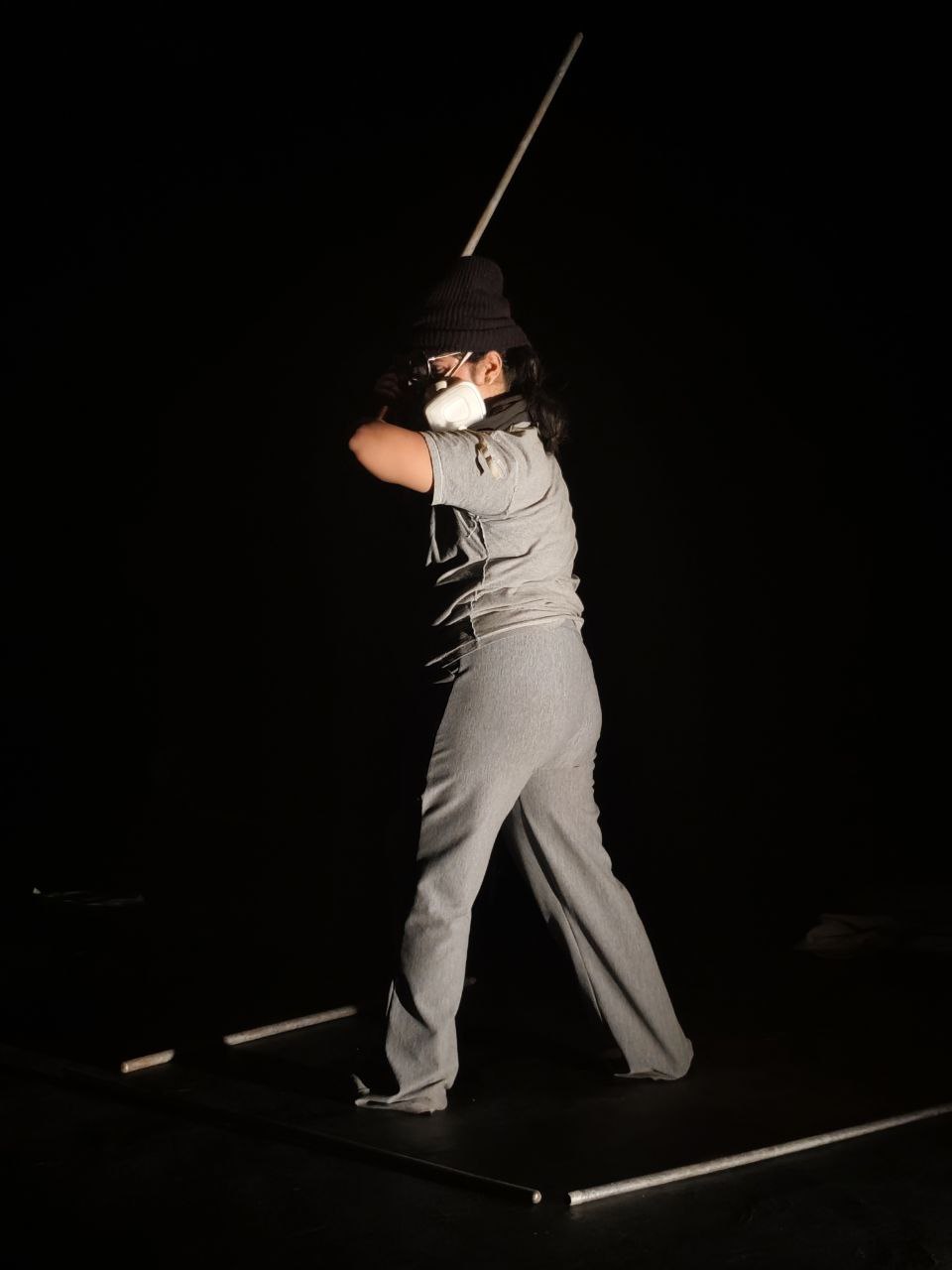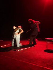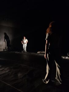 Una tarde de tensión poética y confrontación simbólica iluminó la Sala Sala Horacio Peterson del Centro de Estudios y Creación Artística Aquiles Nazoa, en la Universidad Nacional Experimental de las Artes, Unearte, donde se presentó el montaje de egreso de la pieza de la dramaturga Mariela Romero.