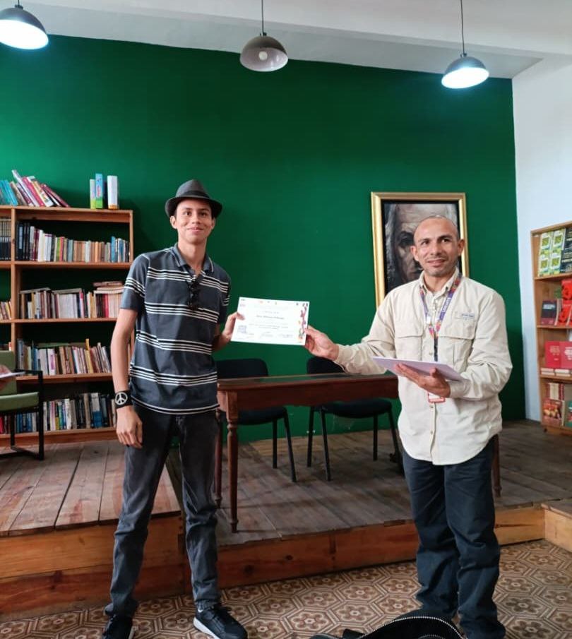 La ceremonia de entrada de certificados, se llevó a cabo en la Librería Colombeia (Planta Baja del Complejo Casa Bicentenario) y contó con la presencia de docentes, estudiantes y el Secretario General de la Unearte, Jesús Peña.