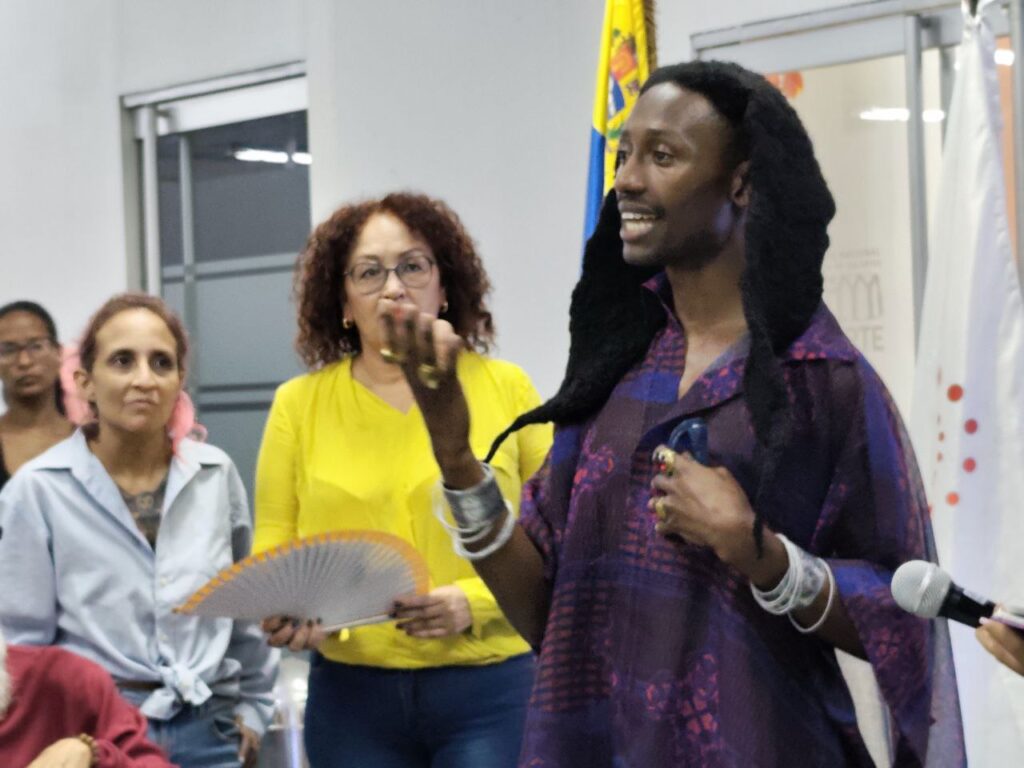 Los artistas cubanos Lisvany García e Inmaray Tillet Fonseca, participantes de la Bienal, presentaron su propuesta sobre identidad y espiritualidad afrodescendiente: “Trabajamos un proyecto sobre la afrodescendencia, el empoderamiento femenino y caracteres que unen a los pueblos en cuanto a la religión afrodescendiente, como la religión Yoruba como complemento artístico, un trabajo autosostenible y de conservación. Tratamos de interpretar el origen religioso, espiritual y conceptual en cuanto a identidad”.