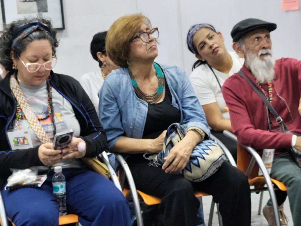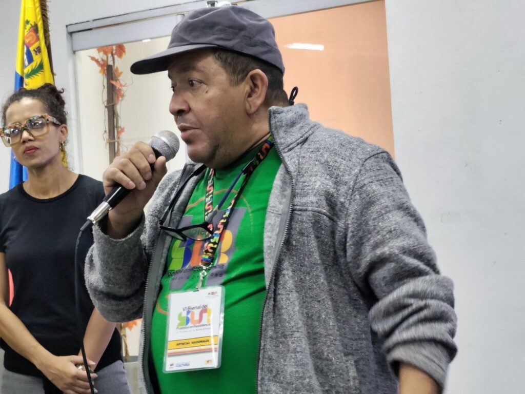 La actividad dio inicio con las palabras de Natalia García, de Fundación Centro de Estudios Latinoamericanos Rómulo Gallegos, Celarg, quien expresó: “Damos la bienvenida a todos los invitados nacionales e internacionales, participantes de la VI Bienal del Sur, Pueblos en Resistencia, que lleva bajo el lema ‘El Poder de la Diversidad’. Nos acompañan artistas provenientes de Rusia, Ruanda, México, Brasil, Cuba y Colombia, quienes compartirán sus experiencias y visiones del arte como herramienta de cambio y reflexión social”.