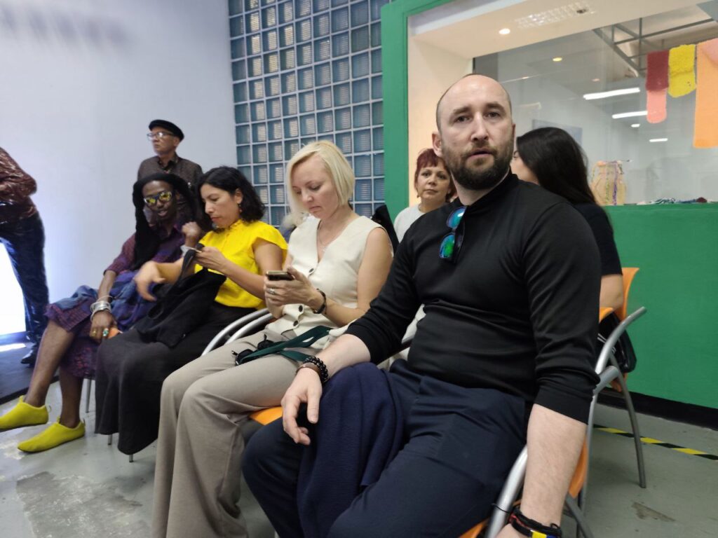 Entre las participaciones internacionales, el artista ruso Vladimir Potapov compartió su visión sobre la vocación artística y el papel del creador en la sociedad: “Es un placer para mí estar aquí, es un honor participar en esta conversa con todos ustedes. Yo creo que esta escuela de arte es el mejor lugar donde se puede estar, y estoy muy seguro de eso porque he trabajado en otros lugares distintos. Se puede ser ingeniero, abogado y otras profesiones, pero ser artista va sobre conocer el entorno. Cuando eres artista formas parte de la creación de la cultura y llegas a formar parte del entorno en el que nos desarrollamos. En este momento es muy importante que ustedes, como artistas, se comprometan a desarrollarse, porque ustedes son el alma de este país. Les deseo la mejor de las suertes y que cuando crezcan no se olviden de su universidad y se sigan desarrollando de la mejor manera”.